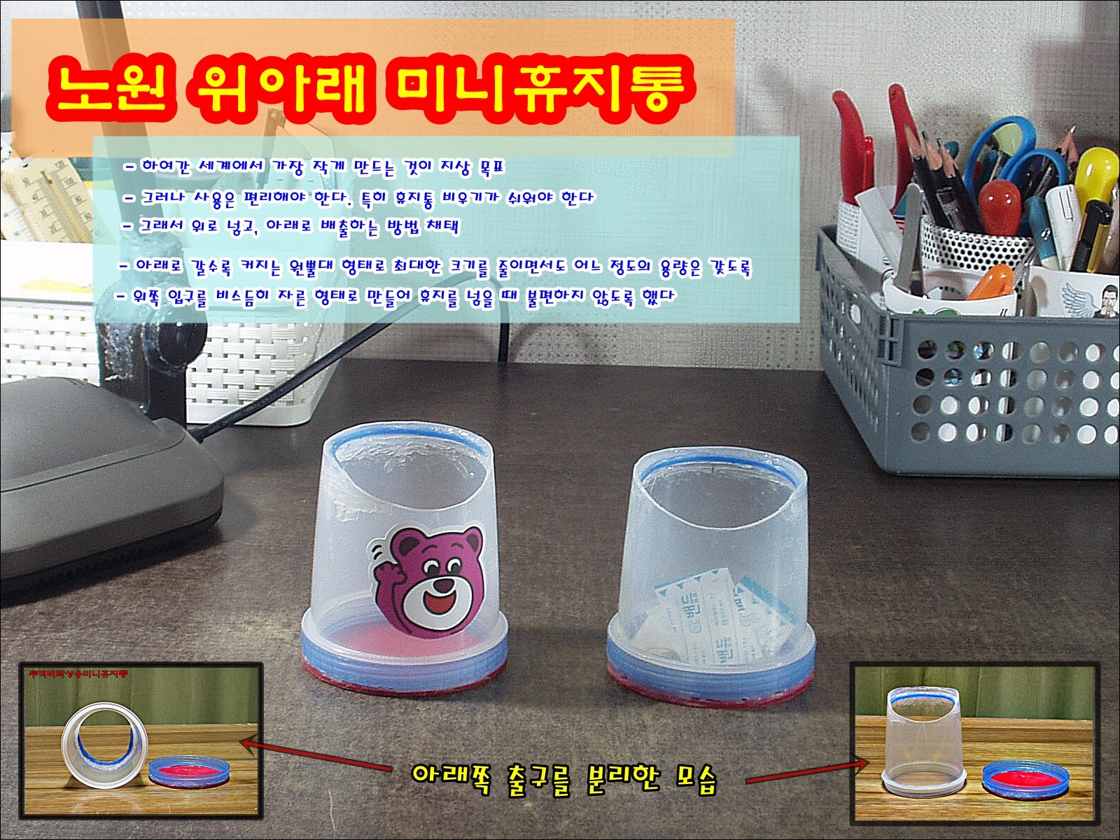 - 미니휴지통 위쪽 구멍 → 손으로 바로 입력