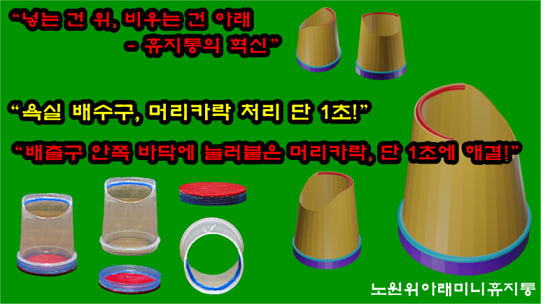 | 임시 머리카락 저장 | 노원 위아래 미니휴지통 | 샤워 직후 손으로 바로 입력, 자연 건조, 별도 도구 불필요 |